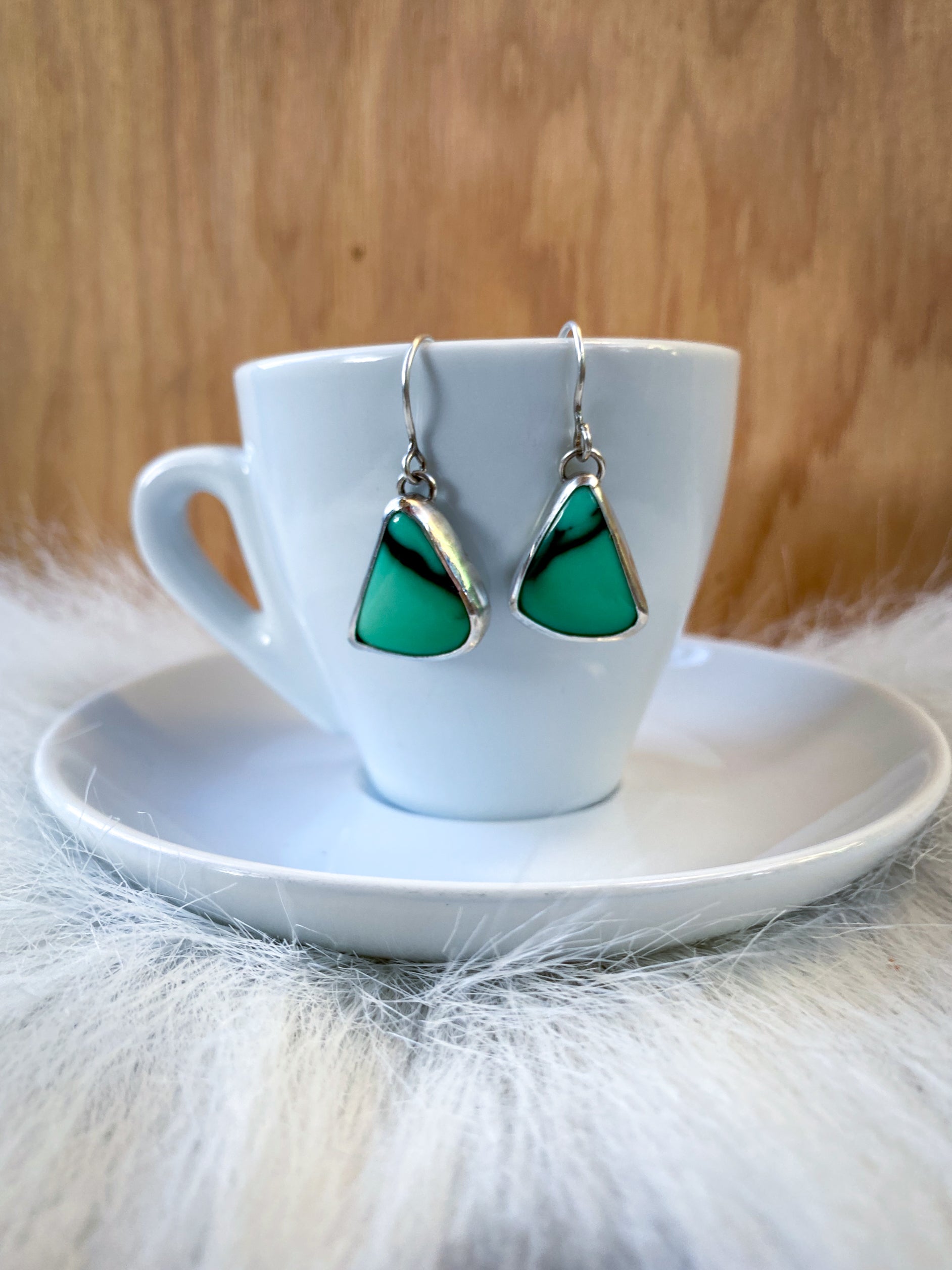 These earrings are made with incredible high-grade Emerald Rose Variscite and you'll get lost in the pools of deep green and black. Set in sterling silver, they are ready for special occasions or everyday wear.